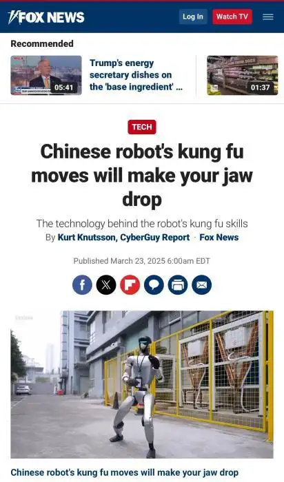近期,中国宇树科技的 G1 机器人以其行云流水般的功夫动作在全球范围内掀起了一阵热潮。美国福克斯新闻网对其赞不绝口,惊叹于它展现出的动作精度与平衡能力。视频中,G1 机器人出拳刚劲有力,扭身敏捷灵活,回旋踢潇洒利落,宛如一位武艺高强的功夫大师,让世界见证了中国科技的魅力。这一惊艳表现不仅彰显了中国在机器人领域的创新实力,更是中国科技走向世界舞台的生动例证。