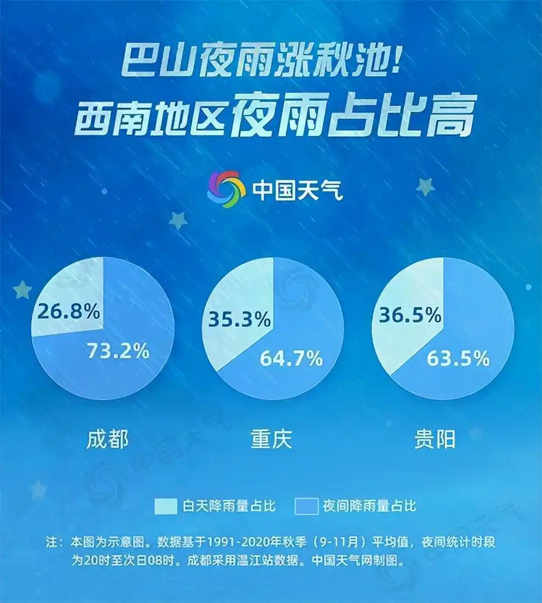 再看华西地区,华西秋雨时节已开启,而且今年较常年偏早 8 天。1100 多年前,诗人李商隐写下 “巴山夜雨涨秋池”,如今这一现象依然是华西地区天气的独特标签。气象大数据证实四川、重庆一带的夜雨概率很高,多地六成以上降雨量出现在夜间。华西秋雨是华西地区秋季特有的天气现象,由频繁南下的冷空气与暖湿空气相遇形成。在数字化时代,通过对降雨量、降雨日数等数据的采集和分析,我们能更深入地了解华西秋雨的特点和影响。比如,知道 9 月到 11 月的雨日可达 30 到 50 天,多的地区甚至接近 60 天。这些绵绵细雨虽然看似温婉,却破坏力十足,长时间阴雨加上偶尔的暴雨,容易导致成熟作物出现霉烂、发芽,对农业生产造成较大影响。借助物联网技术,农民可以在农田中布置传感器,实时采集土壤湿度、温度等数据,自动识别农作物的生长状况和受灾风险,及时采取措施保护农作物。